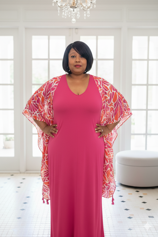 Plus Size Abstract Mustard Tassel Kimono