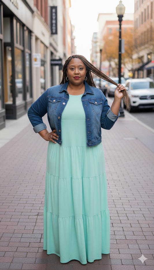 Plus Size Mint Green Tiered Maxi Dress
