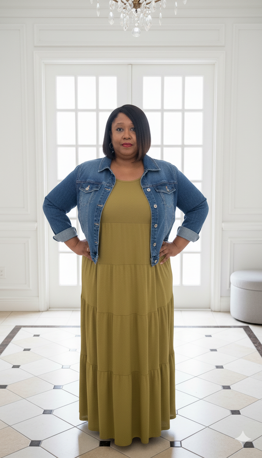Plus Size Olive Mustard Tiered Maxi Dress
