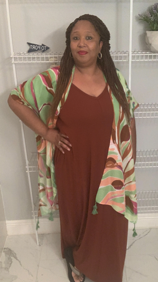 Abstract Leaves Plus Size Tassel Kimono