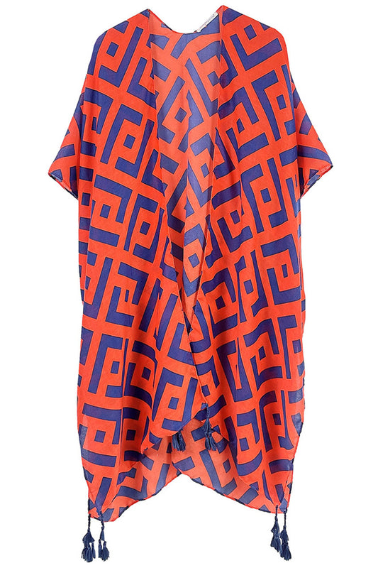 Plus Size Geometric Pattern Tassel Kimono