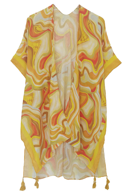 Abstract Mustard Plus Size Tassel Kimono