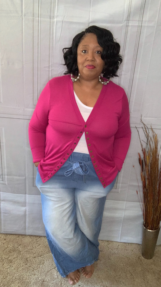 Plus Size Snap Button Cardigan