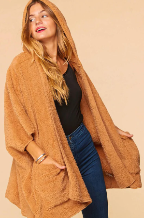 Plus Size Cozy Sherpa Hoodie Poncho in Taupe
