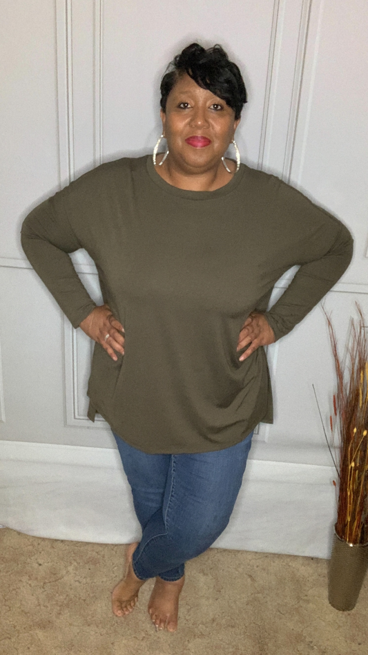 Plus Size Hi-Low Hem Top (Dark Olive)